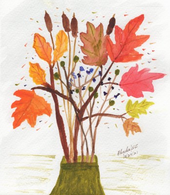 It’s the time of year, when I start creating Christmas cards for the new holiday season. This is the front of the very first card for the 2021 Christmas season. I think I’m going to leave the inside of this one blank so the sender will have plenty of room for his own personal message or even a short note. I did the original work in watercolor, and then turned it into prints for the cards.